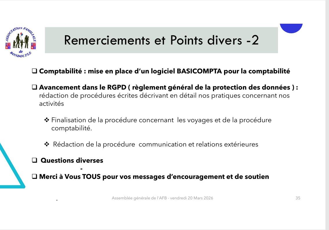 Compte-rendu de l'Assemblée générale ordinaire du 20 mars 2026.