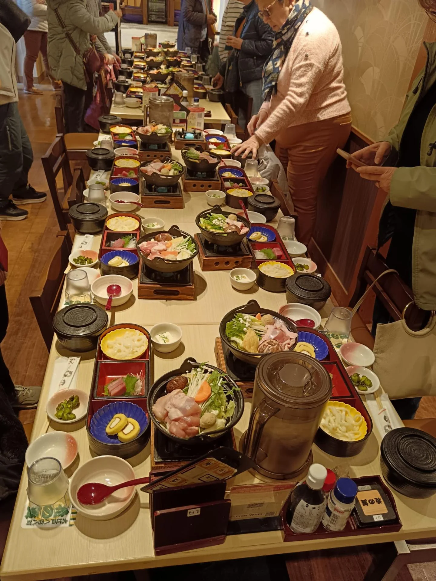 La pension complète du déjeuner du J2 au dîner du J11 incluant des repas traditionnels tels que : sushis, shabu shabu, yakitoris, bœuf d’Hida, Tempura, Okonomiyaki…